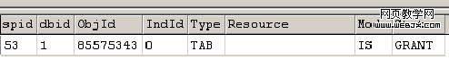 从上面的结果我们可以看到spid、dbid、objid、indid、type、resource、mode和status字段。spid是进程标识号码,用于识别到SQL 服务器的连接。要发现哪些用户和该spid相连,你就要执行存储过程sp_who,并将spid作为一个参数传输给该程序。dbid是锁定发生的数据库,你可以在主数据库中的sysdatabases表格中找到它。字段objid用来显示在数据库中锁定发生所在的对象。要查看这个对象,你可以在主数据库中的sysobjects表格中查询指定的objid。
