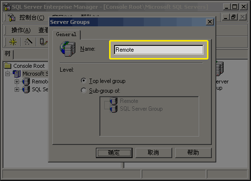 为您新建的 SQL Server Group 起一个名字,如“Remote”