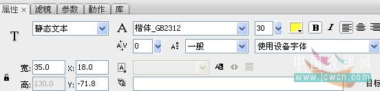 4. 新建一MC,取名为“文本”,用文本工具输入,如下图的文字,使用设备字体。