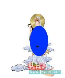 3. 新建一MC,取名为遮罩观音,将观音元件拖入居中对齐,打开属性面板,实例名称为:img_mc,在“使用运行时缓存”前打钩。在200帧插入帧,上锁。新插入一图层画一个无笔触任一填充色的椭园,如下图: