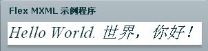 <mx:Label text="Hello World. 世界,你好!" fontWeight="normal" fontSize="24" fontFamily="Times New Roman" fontStyle="italic" alpha="1.0"/>