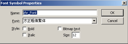 这样我们的做法是,在Flash cs3里来做字体共享库,同样在库里新建一个字体