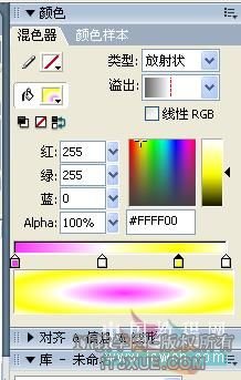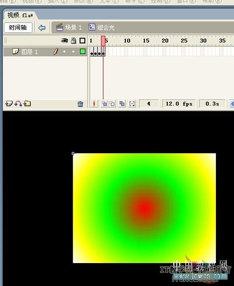 4把它转成影片剪辑。在第一层加三个关键帧,每个关关键帧变一种填充色。如图11