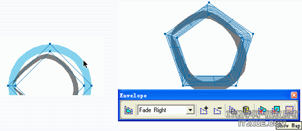 选择椭圆并点击封套面板里的 Paste As Envelope 按钮,将矩形封套应用到椭圆上。 下面我们再具体解释一下: