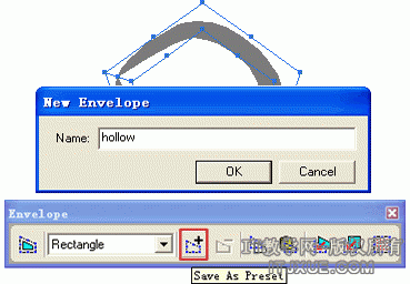 最后你可以点击封套面板上的 Save As Preset 按钮来保存我们创建的封套,为它取个名字。ok!这样你就创建了一个新的封套并且它可以被重复利用。