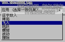 选择好事件后,我们要在应用下拉列表里选择一个该事件的应用效果。在该列表下有七种可以采用的效果,我们选择飞入。