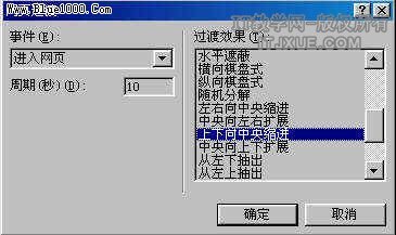 3.在周期文本框里输入持续的时间,然后在过渡效果列表框里点选一个效果,单击确定。利用浏览器打开该页面,因为我们选择的网页过渡是进入网页,所以当你打开该页时你就能看到过渡效果了。