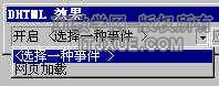 2.在DHTML工具栏,选择通过开启的下拉列表选择一种事件,文本和图片所具有的事件是不同的;接下来再应用下拉列表选择一种效果;最后选择该效果的的实现方法;