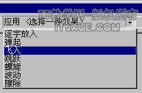 选择好事件后,我们要在应用下拉列表里选择一个该事件的应用效果。在该列表下有七种可以采用的效果,我们选择飞入。