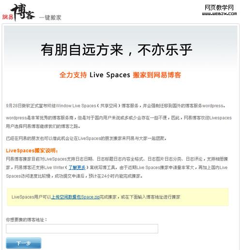 163:网易博客的MSN Live Spaces博客搬家工具,“有朋自远方来,不亦乐乎”,透露着浓浓的书墨气息,符合爱写博客人群的文化内涵。