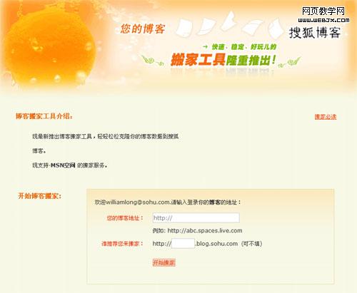 sohu:搜狐博客的MSN Live Spaces博客搬家工具,“您的博客搬家工具,隆重推出”直接了当,一目了然,套用歌曲的分类应该叫通俗唱法了吧。