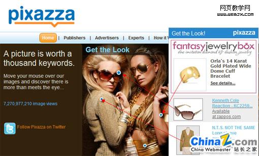 Pixazza网络工具(http://www.pixazza.com/)与美国时尚人物Ladygaga不仅仅在姓名的发音上相似,而且与她一样,成了时下美国的时尚宠儿。Pixazza虽没有Ladygaga那样夸张性感的身姿,也没有她那惊世骇俗的嗓音与突破世俗的穿戴,但它有更加感性的新型网络技术,更加诱人的盈利模式,因此同样受到了网民的追捧。