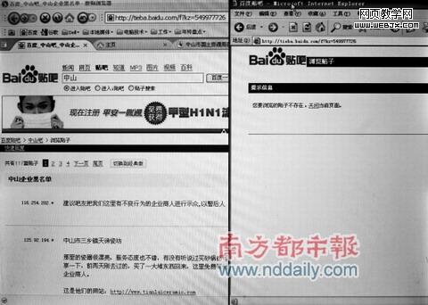 中山网友在中山某贴吧发出名为“中山企业黑名单”的帖子,得到了广大中山网友的响应,但任何一个人只需花1200元就可以把这个有116篇回帖的曝光帖删除。近日,有职业删帖人发帖表示,自己可以删除贴吧内负面影响的帖子。记者随后调查发现,无需提供任何证明,只要愿意出钱,职业删帖人就可以删掉任何帖子。