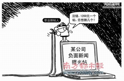 “论坛都有版主对网友发布的信息进行审核,而企业如果觉得帖子不真实,影响了企业的声誉,可以通过与网站负责人接洽的方式来删除或修改帖子,但职业删帖人直接删帖,则明显伤害了发帖人的言论自由。