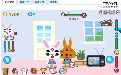 登录开心宝贝后,首先需要创建一个自己的宠物,用户可以自由的选择性别、肤色、发型、眼睛、鼻子等等,使用丰富的想象力和创造力,就能创造出一个独一无二的个性化宠物。用户陪宠物玩耍,为宠物洗澡和喂食时,宠物的清洁度、幸福度等会增加。