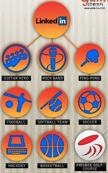 ▲ Linkedin:吉他英雄、摇滚乐团、乒乓球桌、叠球队、足球活动、骇客日、篮球。