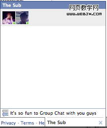 用户无法在主页上直接和群组内某成员直接进行交谈,必须先从主页左侧的导航栏中点击进入某个群组,然后点击屏幕右上方的“与该群组成员聊天”按钮,然后会在屏幕下方弹出一个对话框,在对话框上方会显示一排该组成员头像照片和名字,若头像右下方带有绿色小方框的,则表示该成员目前在线(如下图所示),若带有蓝灰色小方框的则表示该成员脱机。关于FACEBOOK群组内的即时聊天功能,目前还没有任何消息称其有与第三方聊天工具厂商合作的迹象。