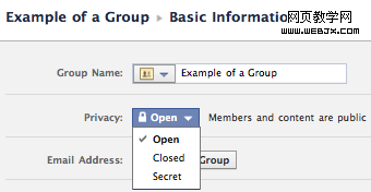 在用户的个人隐私设置中不会有群组的隐私设置功能。目前用户只能进入自己所创建的群组页面之中,点击修改群组设置,然后才能修改群组的隐私设置。群组创建者可以通过此方法将群组信息(包括群组名称,群组成员,群组的内容等)设置为所有人可见,也可以关闭此功能,仅公开群组名称和群组成员,群组内的所有内容仅对群组成员可见。也可以将自己的群组设置为私密组,那就意味着群组的名称,成员和内容都仅对群组成员可见。如下图所示