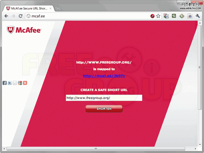 看到这个名称是不是很眼熟呢?没错,McAf.ee 就是来自知名防毒软件大厂McAfee 的缩网址服务。没想到防毒软件公司也进军缩网址这个领域吧?我也没想到。通过McAf.ee 缩短后的网址在用户浏览时能够显是出该网站是否安全,让缩网址不但是一项方便的工具,也能间接宣传品牌。