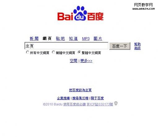 百度繁体中文搜索首页(htpp://tw.baidu.com)