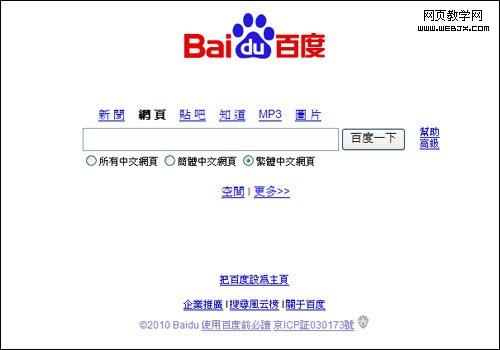 据了解,百度繁体中文搜索支持简体、繁体和简繁体混合三种模式,不过默认是繁体中文搜索。百度繁体中文搜索页面功能与百度主页类似,包括了新闻、网页、贴吧、知道、MP3、图片等功能,不同的是,没有视频和地图功能,另外百科和hao123也未在首页呈现。
