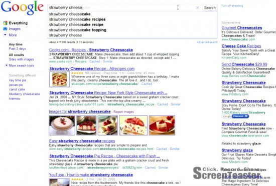 SEO顾问Rob Ousbey说他遇到了一个有趣的Google搜索实验,随着你在搜索框里输入文字,Google搜索结果页面将自动刷新给你当时输入文字的搜索条目和广告。Google官方也确认了Ousbey遇到的这一新特性是他们正在测试的功能之一。不过目前只有Ousbey一个人看到了这个测试结果,可见Google的这一新功能测试还只覆盖了很少很少的人群。