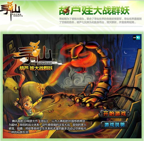 腾讯称其为首款3D网游大作《寻仙》,官方描述为:以为人熟知的中国传统神话为题材,独创的战斗体系、动作感很强的法宝大战、首创的多人骑宠、结婚、师徒等多样交互关系和丰富的副本活动让你体验不一样的仙侣生活。