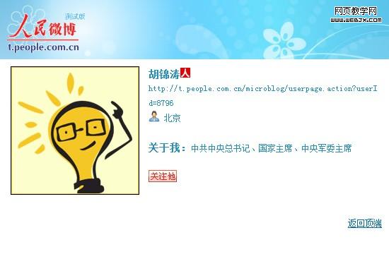 人民网微博出现胡锦涛帐号 网友期待博文