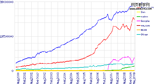 在2009年5月的调查中共收到235,890,526个网站的答复,比上个月增加了430万个,而Apache稳居Web服务器的榜首,新增了三百三十 万个站使用了Apache服务器;微软公司的IIS还是排在第二,不过比上个月少了将近100万个网站,这可能跟微软的Live空间网址的活跃度有关系; 第三名是来自中国的QQ.com;而谷歌排名第四;剩下的依然是Nginx领先。