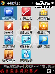 原C网手机:功能区-->神奇宝典-->软件超市-->目录-->手机炒股-->同花顺炒股level-2