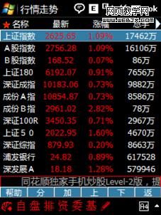 同花顺手机炒股(手机访问http://hexin.cn)是目前国内最好、股民使用量最高、性能最稳定、支持券商最多并支持手机在线交易的随身免费手机炒股软件。同花顺手机炒股支持联通(CDMA)、移动、电信三大运营商,支持最新主流机型程序使用,如iphone,黑莓,诺基亚,三星,MOTO等数千款机型。同花顺2009高端版提供全球股指行情和股票快速买卖功能,支持一键切换;触摸屏支持手指滑动操作;支持包括银河、金通、中信、招商、广发、海通等全国93家券商的在线交易。