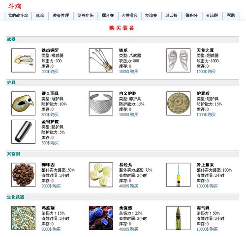 接下来就要给斗鸡配置一些装备了,至于生化武器嘛,老话说得好,防人之心不可无。