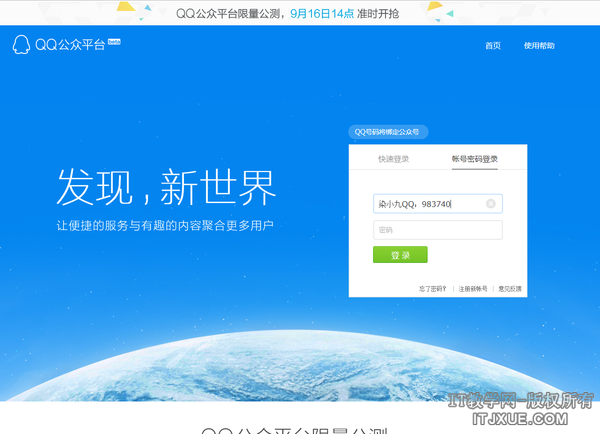 9月16号14:00 QQ公众平台开启限量公测