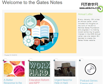 Gates Notes网站收集了包含盖茨思想的视频、播客和文字笔记等,同时还包含了他对书籍、在线发展的回应,以及与专家谈论有关清洁能源和教育的会话内容。