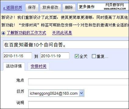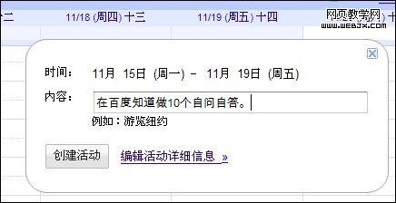 3、制定网络推广计划。Google日历制定计划非常简单,认真看下“创建活动”,“编辑活动”,可见Google人性化,中国产品远远比不上。