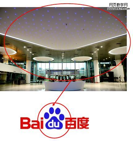 进大堂了,7米高的大堂好震撼!抬头看,这么眼熟?哇!头顶上的,居然是百度的LOGO——小熊掌~~~~熊掌上面还有蓝色的小点点一闪一闪的,好梦幻啊!