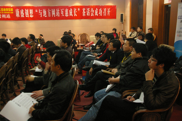 会议主办方康盛创想公司创始人兼CEO戴志康首先进行演讲,对地方网站的机遇和前景进行阐述;副总裁李明顺公布了康盛创想公司的“手握手互助成长计划”;相关运营、技术人员分享了SNS运营经验,并面对面解答了与会站长提出的各种技术问题;长三角地区和其它地区的地方网站负责人围绕“与地方网站互惠成长”为主题展开了热烈讨论。会议协办方化龙巷网站钱钰称这次茶话会为“地方网站的首次高峰会议”、“站长界的一次盛会”,他表示:在新的传播形势下,各地方网站应该群策群力、互相协作、通力配合,在合作中实现共赢。