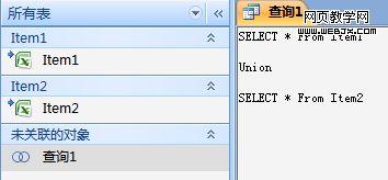 在SQL视图中,为所有链接的Excel表输入Select语句,在每个Select语句间使用Union操作符,在SQL视图中输入选择查询语句