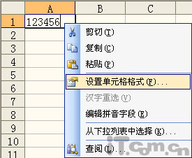 首先鼠标右键单击需要用大写金额显示的单元格,在弹出的快捷菜单中选择“设置单元格格式”,如下图。