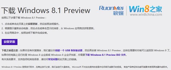 鉴于Win8.1预览版将来升级到正式版时需要重装所有应用,因此并不建议大家通过Windwos Store将现有的Win8正式版升级为Win8.1预览版。