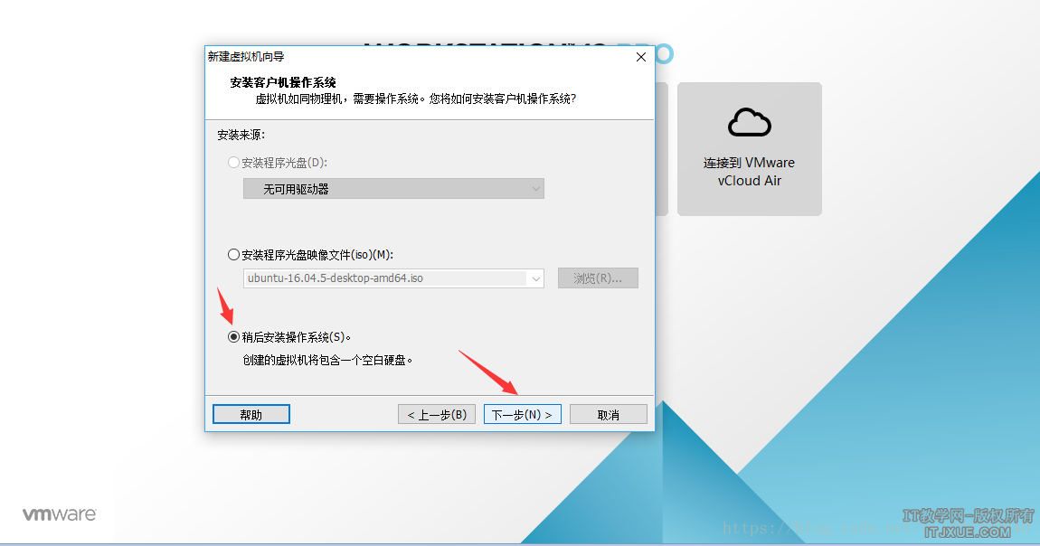 2.3)选择稍后安装操作系统,然后 点击 下一步