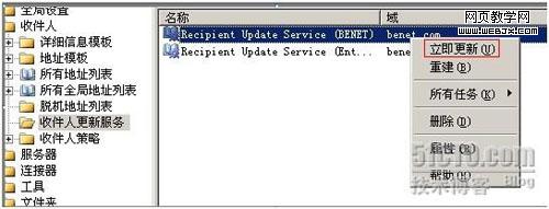 2、点击“收件人”,点击“收件人更新服务”,对两个列表内容右键点击“立即更新”。