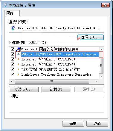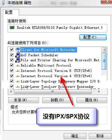 此连接使用的项目里没有IPX/SPX兼容协议