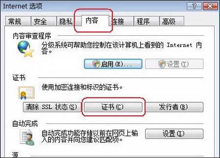 1、打开 IE7 浏览器,点击“工具” --> “Internet选项” --> “内容”选项卡,如图1所示。