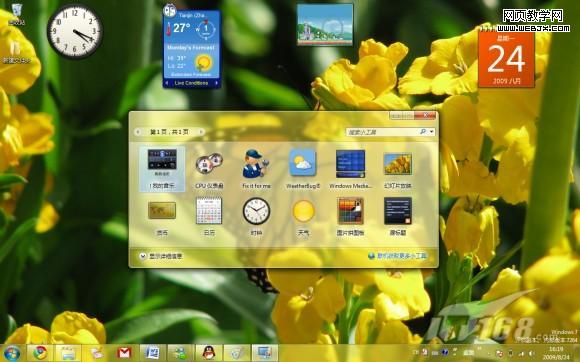 在Windows7中系统不再对侧边栏中的小工具的位置进行局限。在该系统中我们可以根据需要将这些小工具随意放置到桌面的任意地方,并且在桌面上添加显示的小工具也更加方便自如了。