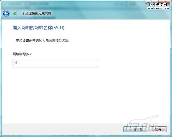 这时会弹出“键入网络的网络名称(SSID)”的窗口,输入网络名称后点击“下一步”按钮(如图4);