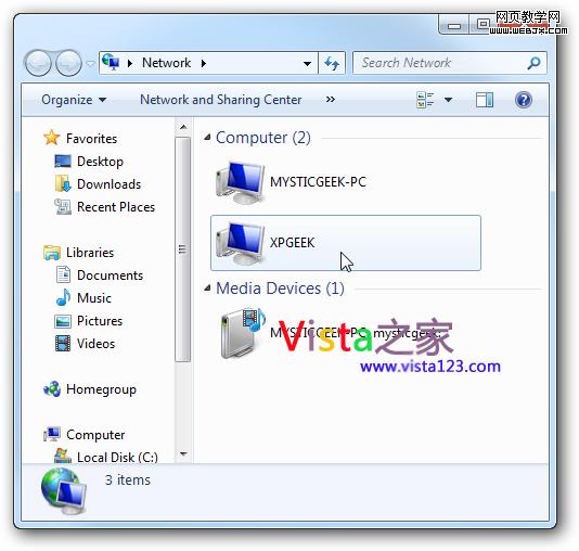 4.现在在Windows 7的机器中应当就可以看到XP机器了。