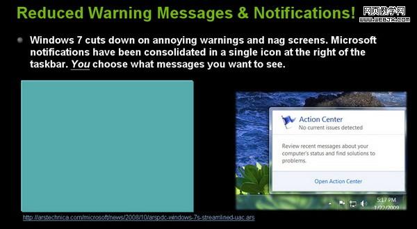 所以,我会直接拿文件中有提到的部分来进行说明,也许不少人知道,但我相信,应该有更多的人不知道,给各位读者一个参考。跳转后可以看Windows 7有几个目前不被提到的新机能: