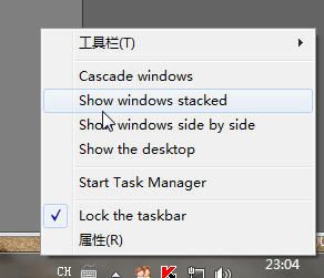 另外还要提下的是,现在任务栏的右键菜单上多了些比较人性化的设置,感觉对大屏幕的用户帮助更加大,至于怎么帮助法我就不截图了,相信你们看了菜单上的字就能明白: