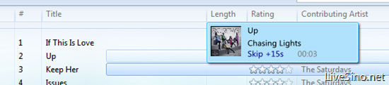 除了正在播放 Now Playing 和音乐库 Library 两种视图模式分离之外,还有一些很不错的小功能,比如:鼠标停留时,15 秒音乐预览;音乐、视频和照片三类分类同时显示在左边(11 中,只能显示其中一项)。
